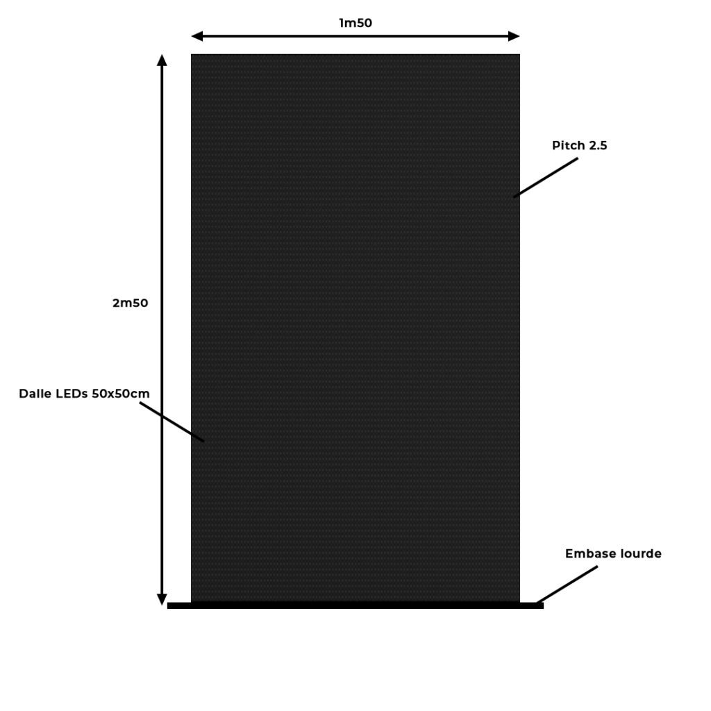 📐 1,50m x 2,50m / Pitch 2.5. Les sont constitués avec des dalles led 50x50cm. Chaque écran est équipé d’un processeur vidéo Novastar à l’arrière, pour envoyer du contenu vidéo en wifi et en continu, comme on peut le voir sur la photo ci-dessous.