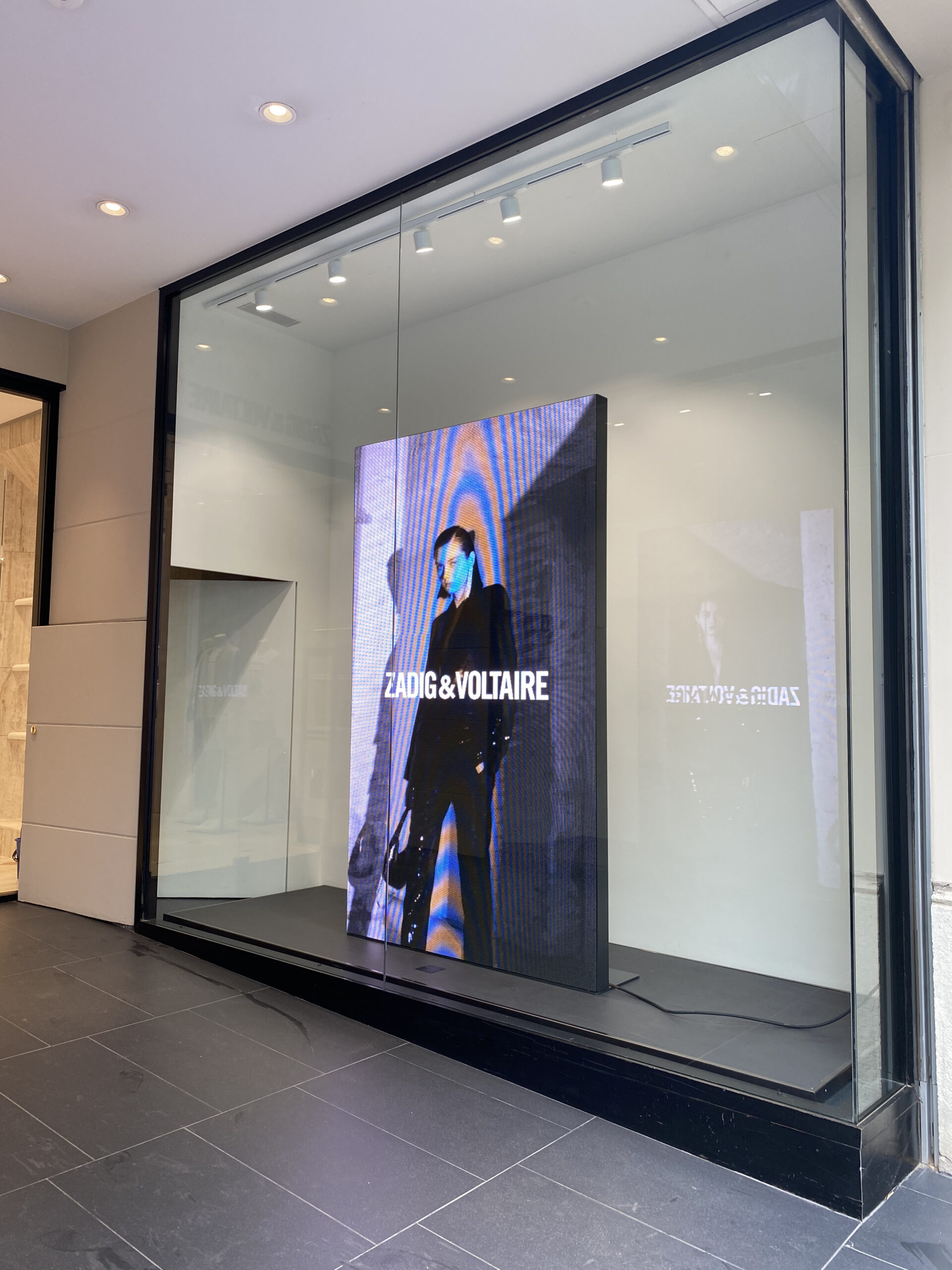 Notre équipe a conçu des coques en acier sur-mesures logo-typées Zadig&Voltaire au laser, afin de cacher l’arrière des dalles leds et les câblages. Afin d’avoir un rendu visuel impeccable et élégant, aussi bien à l’avant qu’à l’arrière. 👌🏻
